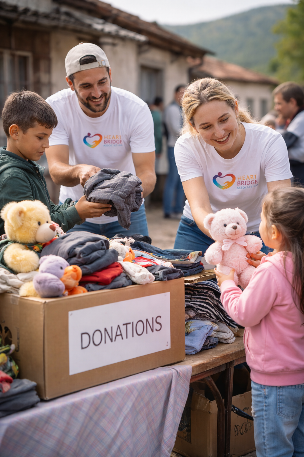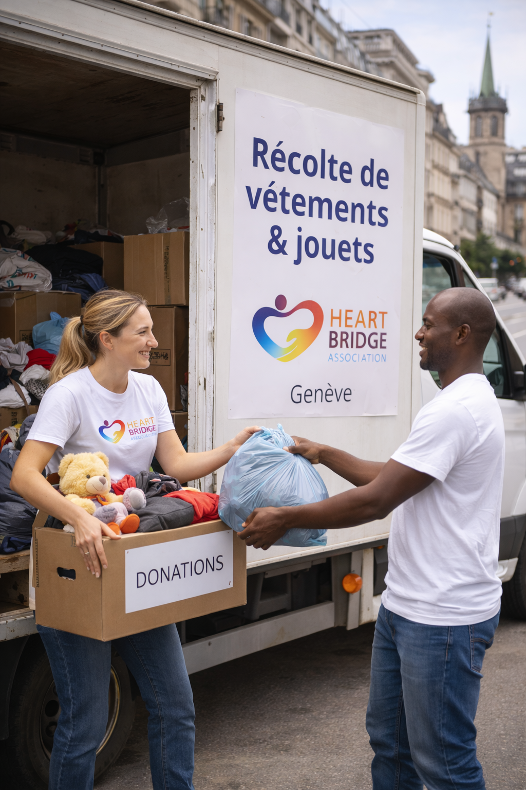Heart Bridge est une association à but non lucratif engagée dans le soutien social et humanitaire, en Suisse et à l’international. Notre objectif est d’agir de manière concrète et responsable auprès de populations en situation de vulnérabilité, en collaboration étroite avec des partenaires locaux de confiance. Nous développons et soutenons des projets qui répondent à des besoins réels identifiés sur le terrain : aide alimentaire et vestimentaire, soutien aux personnes âgées, accès à l’eau potable, accompagnement social et actions humanitaires ciblées. Chaque intervention est pensée pour avoir un impact utile, mesurable et durable, tout en respectant les réalités locales et culturelles.